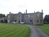 Country house. C16, late C18 probably by J. Carr of York, C19. Coursed rubble, ashlar, brick, some rendering. Hipped slate roof, with gable with bellcote to the east. 8 irregularly dispersed stacks, that above the centre west bay is star shaped with 8 points. The north front has, off centre east, a projecting 2 storey coped and gabled porch. The central Tudor arched doorway has a door with blind panels decorated with 4 quatrefoils to the base and 3 arched lights above. Over is a hood mould with label stops and above, supported by 5 corbels, is an ashlar plaque carved with the Staunton coat of arms and dated 1573, having decorated surround and slightly projecting hood. On the first floor is a stone transom and mullion casement with 3 arched lights, lead panes, hood mould and label stops. The west wall of this bay has a blocked opening. The bay to the east has single stone transom and mullion casements on each floor, each with 5 arched lights, lead panes, hood mould and label stops. The bay west of the porch has on the ground floor west a stone transom and mullion casement, with 5 arched lights, lead panes, hood mould and label stops. Above are 2 similar casements, that to the east having 3 lights only. The ground floor window has stained glass in the top half of the central 3 lights. Between the 2 floors, in the centre, is an ashlar plaque resting on the remnants of a string course, with a carved coat of arms and dated 1554. The 2 outer bays are both C18 canted brick with 3 glazing bar sashes to each floor. To the east are early C19 coursed rubble extensions. The 1st with hipped slate roof and rendered stack to the rear with 3 pots. l1/2 storeys. Ground floor arched entrance with 2 wooden mullion casements to the west with 4 and 3 lights with blank arched over. Above 4 wooden mullion casements with lead panes and 3 arched lights to those on the west, with a single 2-arched light window to the east. All under flat heads. Between ground and 1st floor are 2 + wall plates. The attached extension to the east has s hipped slate roof with gable to the west, with single gable stack, 11/2 storeys, but slightly lower then the former extension. There are 2 casements to each floor. All are stone transoms with 3 lights and follow the same pattern as those to the west, however the panes are lozenge shaped. There are 6 round tie plates. The extension is continued to a coursed rubble wall with brick coping and C18 ashlar orb on ashlar base at its east end. The south front, probably by John Carr of York, is coursed rubble and brick with a few ashlar dressings. Set on an ashlar plinth. 2 storeys, 10 bays. The off centre canted 3 bay projection has a central doorway, 4 steps up, with moulded ashlar surround and moulded brackets supporting a slightly projecting hood. The half glazed door has a 6 pane overlight. Flanked by single glazing bar sashes with 2 bays to the east and single bay to the west, with outer projecting double bays. All have glazing bar sashes. Those to the 3rd and 4th bays in from the west are under segmental arches and have ashlar surrounds and keystones. Above 10 similar sashes. The eastern projecting double bay has to its west side between ground and 1st floor a blocked opening with ashlar surround, there are a few ashlar quoins to the bay east of the western projecting double bay. To the east is a single storey red brick extension with hipped slate roof and single brick ridge stack. There are 3 glazing bar sashes. (NCC/js)