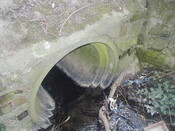 Bridge carrying track over Normanton Brook. Single span, stone abutments, brick arch and concrete repairs. (1)